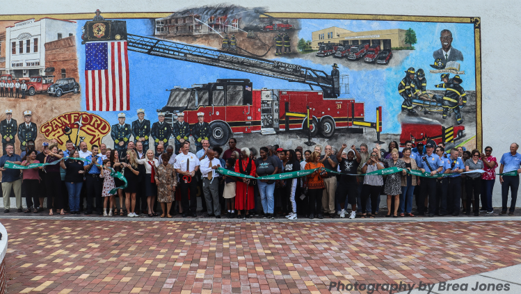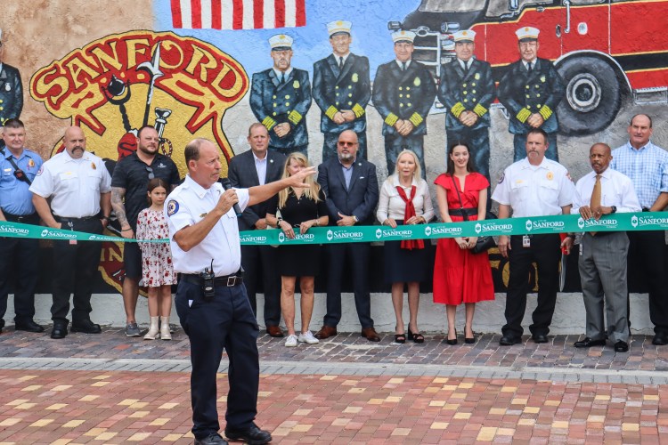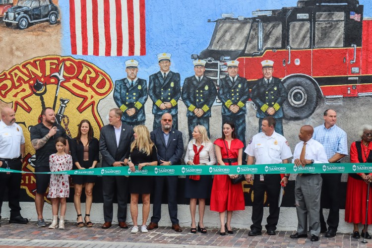 The City of Sanford held a ribbon-cutting ceremony Thursday in Paulucci Park to unveil a new mural celebrating the Sanford Fire Department’s 150th anniversary.