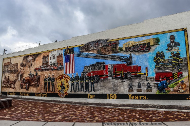The mural “reflects Sanford’s unique character and history,” said Sanford Mayor Art Woodruff. “Sanford’s public art program is continuing to add to the dynamic attraction Sanford has become. I am pleased we are recognizing the 150-year dedication of the Sanford Fire Department to our community through art, to be enjoyed for many years to come. This mural will be a perfect photo opportunity while visiting beautiful historic downtown Sanford,”